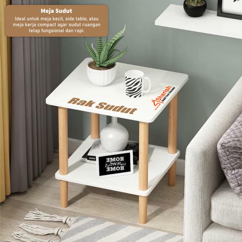 Ideal untuk meja kecil, side table, atau meja kerja compact agar sudut ruangan tetap fungsional dan rapi.