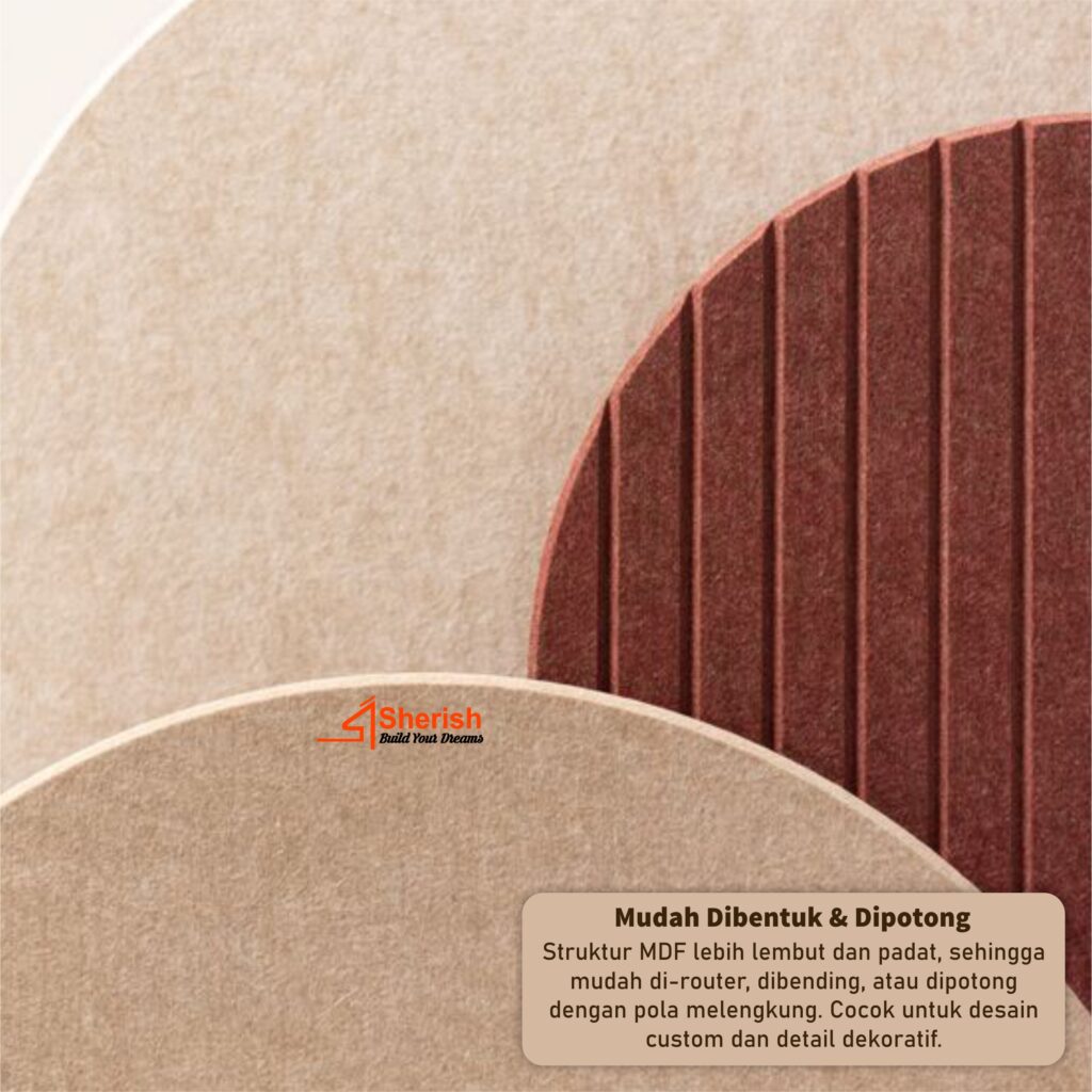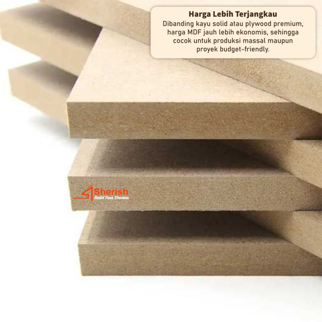 Dibanding kayu solid atau plywood premium, harga MDF jauh lebih ekonomis, sehingga cocok untuk produksi massal maupun proyek budget-friendly.
