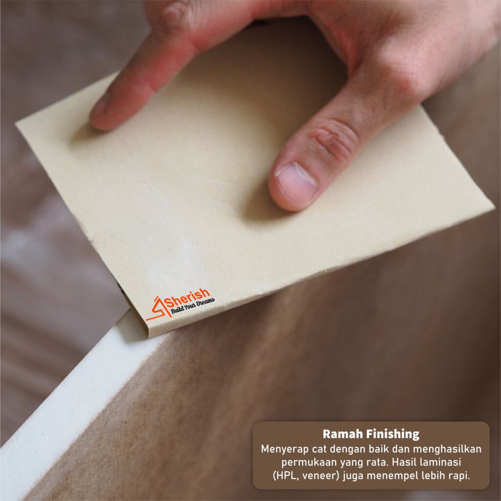Menyerap cat dengan baik dan menghasilkan permukaan yang rata. Hasil laminasi (HPL, veneer) juga menempel lebih rapi.