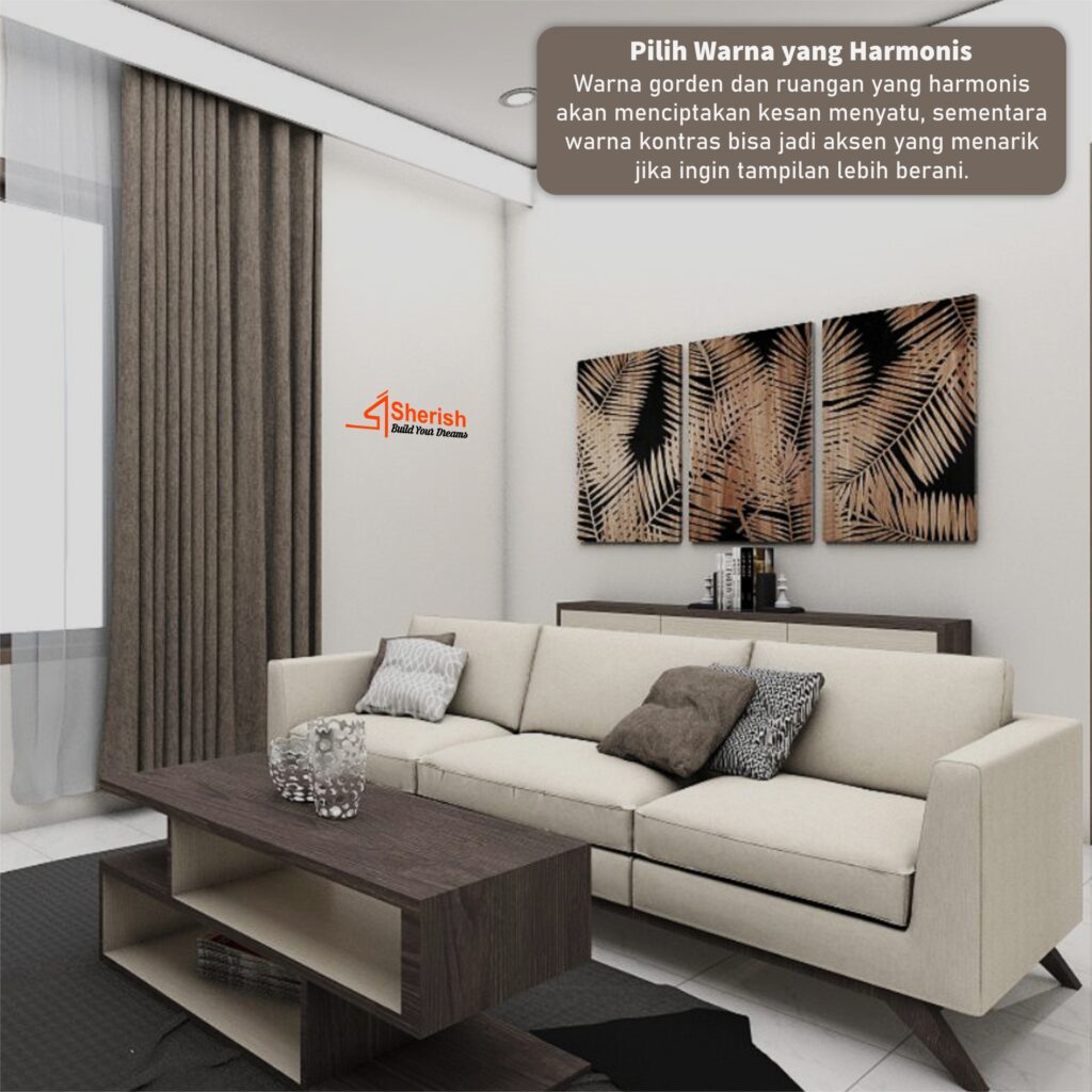 Warna gorden dan ruangan yang harmonis akan menciptakan kesan menyatu, sementara warna kontras bisa jadi aksen yang menarik jika ingin tampilan lebih berani.