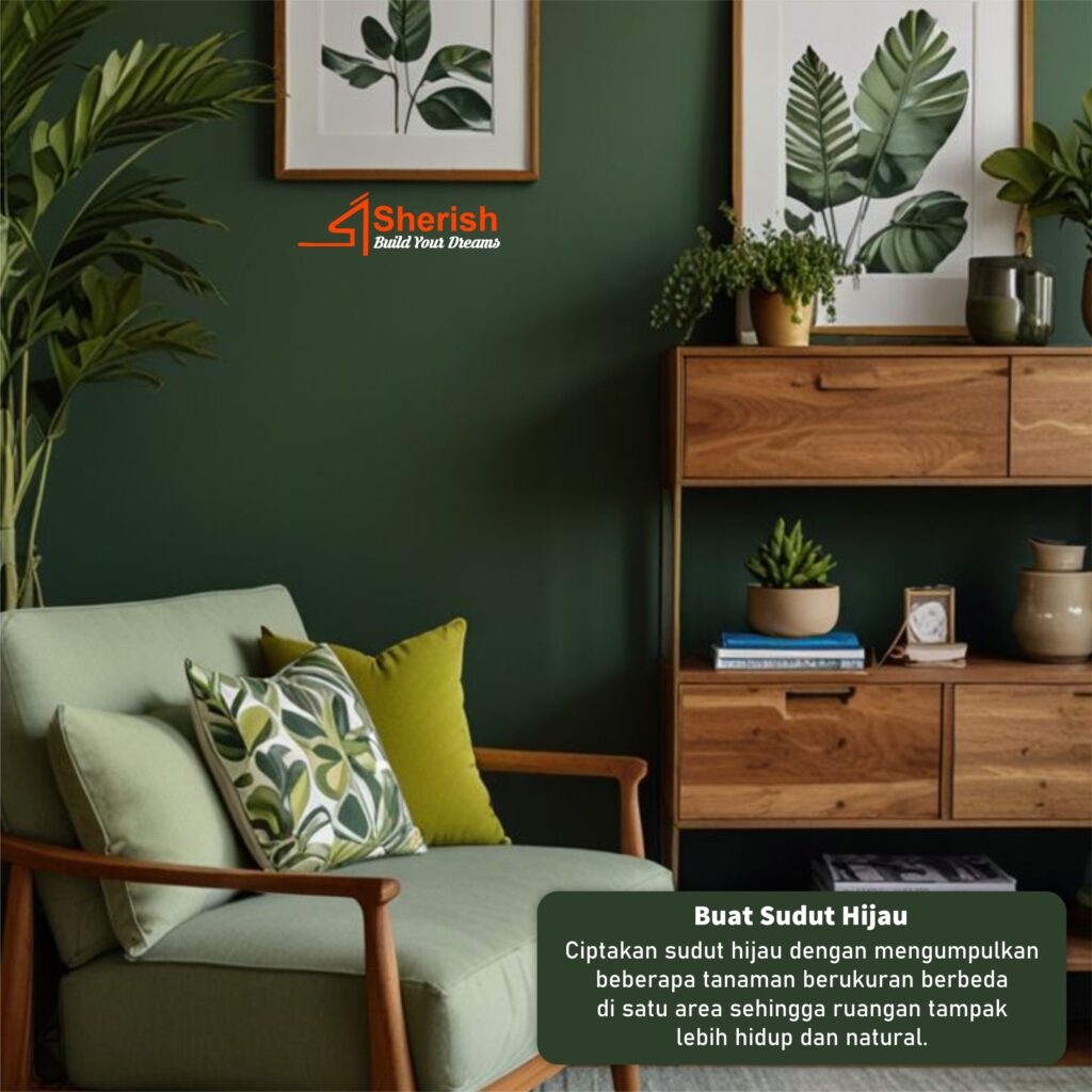 Ciptakan sudut hijau dengan mengumpulkan beberapa tanaman berukuran berbeda di satu area sehingga ruangan tampak lebih hidup dan natural.